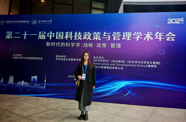 2025年10月25日至26日,由中国科学学与科技政策研究会主办、华中科技大学管理学院承办的第二十一届中国科技政策与管理学术年会在湖北武汉成功举办。本届年会以“新时代的科学学:战略·政策·管理”为主题,来自全国多所高校和科研机构的专家学者齐聚一堂,旨在探讨数智科技、学科交叉、复杂科学、开源创新等科技发展新趋势对科学学理论方法与政策实践带来的深刻影响,交流新时代科技战略与科研范式变革下的管理创新经验。我院研究生吴可盈受邀参加了本次会议并进行论文汇报。