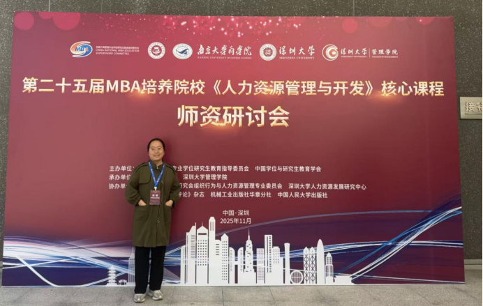 为实现MBA教育的高质量发展,提升全国MBA培养院校《人力资源管理与开发》课程师资队伍专业素养,为从事人力资源管理与开发课程教学研究的教师搭建业务经验交流平台,2025年11月21日至11月23日,由全国工商管理专业学位研究生教育指导委员会、中国学位与研究生教育学会联合主办,深圳大学管理学院承办的第25届全国MBA培养院校《人力资源管理与开发》核心课程师资研讨会顺利举行。我院研究生导师赵颖应邀参会。