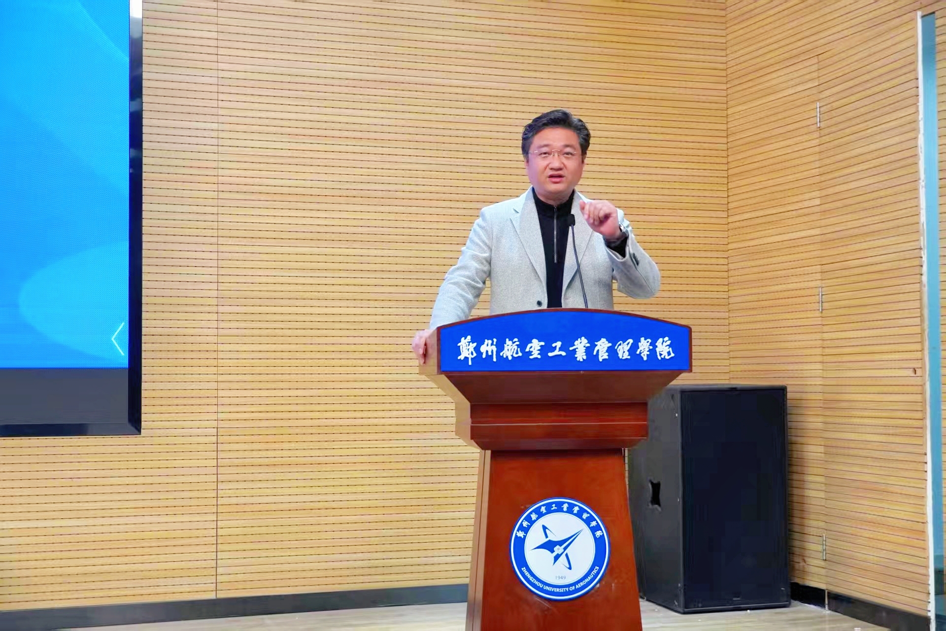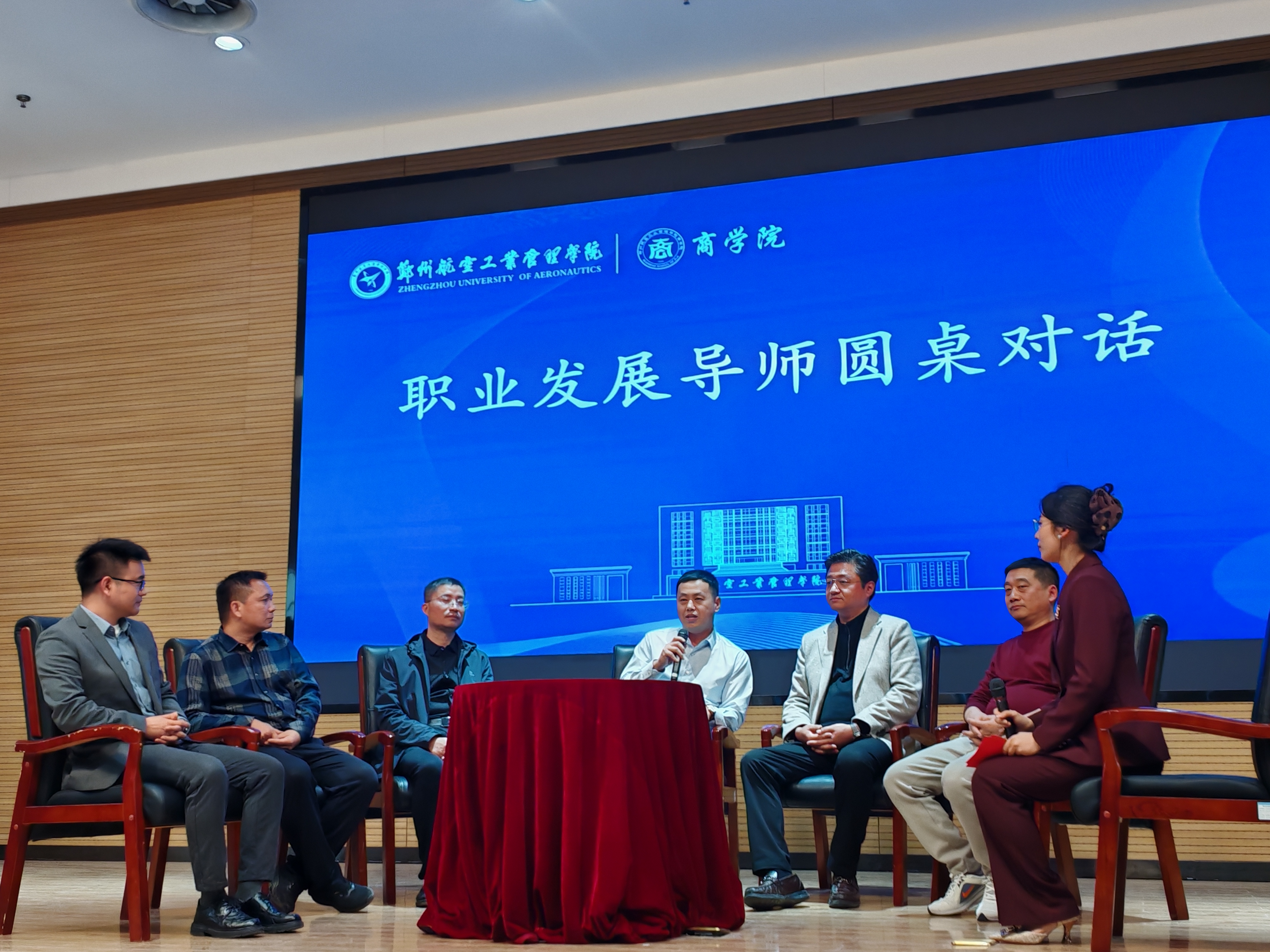 12月4日下午,第五届“商学·悦道”航空财经文化节之首届职业发展导师论坛在图书馆第二报告厅顺利举行。副校长程骄杰、党委学工部部长张新红、招生就业处处长韩忠军、校团委副书记祁蒙以及河南三合旅游开发有限公司总经理智延广等六名第一、第二批职业发展导师代表、河南尚合教育在线科技有限公司教学教研主管刘迪等七名第三批新聘任职业发展导师代表出席论坛。我院领导班子及师生代表参加了本次活动。论坛在郑州航院合唱团演唱的《星辰大海》中拉开序幕。