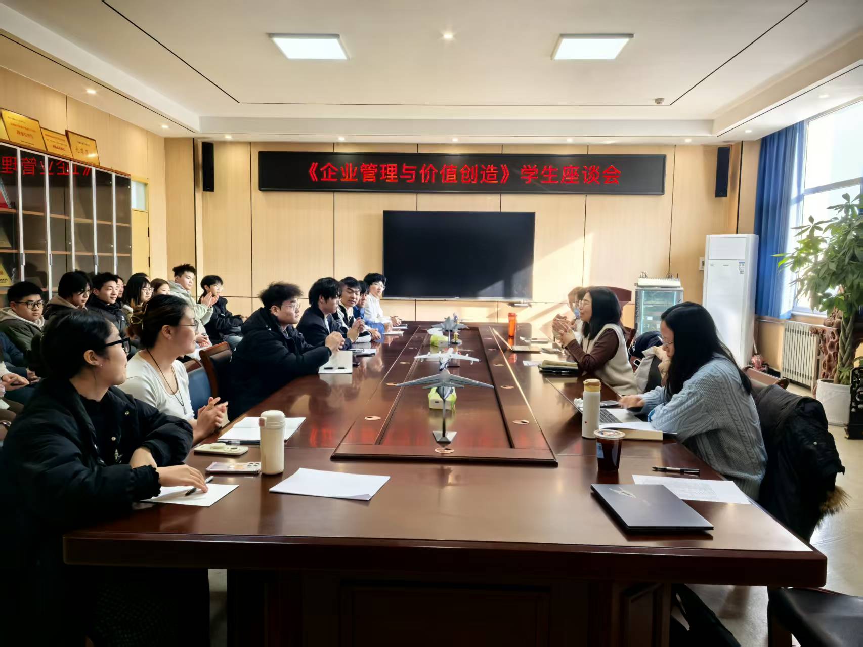 为进一步提升课程《企业管理与价值创造》课程教学质量,增强课程的针对性与实用性,我院于12月25日下午在02C307组织召开了学生座谈会。副院长张桂玲、课程组教师及各学院学生代表参加了座谈。
