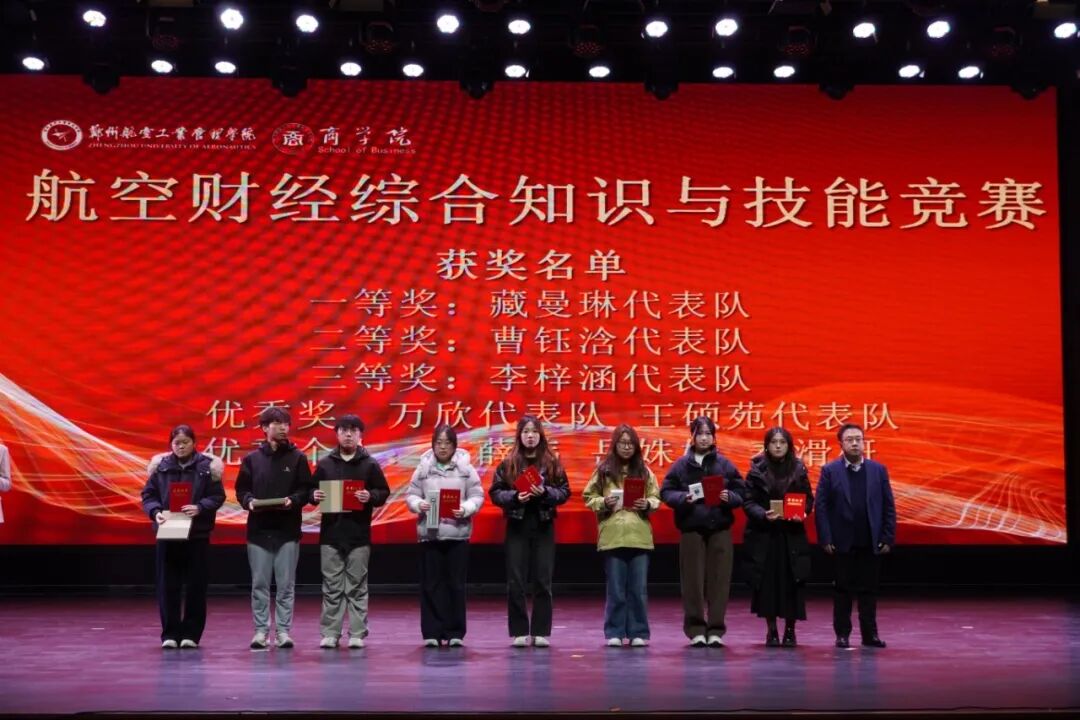在文化节闭幕式上,学院对航空财经文化系列赛事中表现优异的同学们进行了集中表彰。本届文化节构建了多元一体的竞赛体系,赛事内容覆盖职业规划、数据分析、财经理论、案例实战、投资模拟等多个专业维度,全面对接航空财经领域的人才培养需求。这些竞赛不仅紧密结合专业知识与实践应用,也有效激发了学生的创新思维与团队协作能力,充分展现了我院“以赛促学、以赛促练”的育人成效。