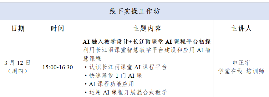 感兴趣的任课教师还可以参加线上“‘AI驱动智慧教学全景创新实践’26春开学季公益直播培训”,通知链接网址如下:https://mp.weixin.qq.com/s/xTP-zljYw6cxUjwjosxSpA?click_id=14&scene=1
