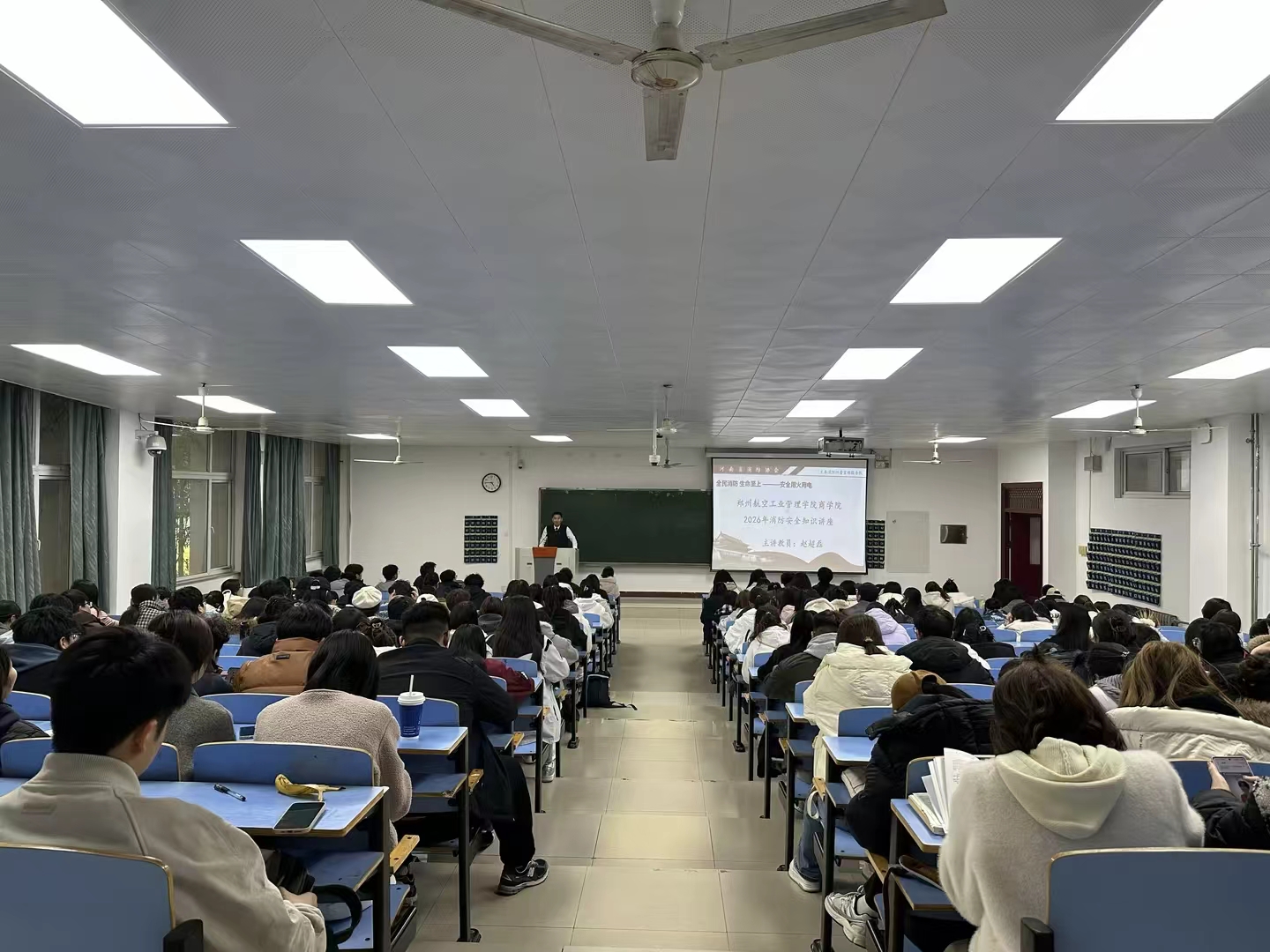 为进一步强化学生安全意识,提升宿舍安全隐患防范能力,我院于3月19日下午在01B105教室顺利举办消防安全专题培训会。本次培训邀请河南省消防协会赵超磊教员担任主讲,党委副书记倪大钊、各年级辅导员和全体宿舍长参加了本次培训。