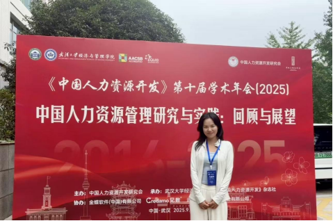 2025年9月19日至21日,由中国人力资源开发研究会主办,武汉大学经济与管理学院、《中国人力资源开发》杂志社承办,金蝶软件(中国)有限公司、Credamo见数、武汉起点人力资源股份有限公司协办的《中国人力资源开发》第十届学术年会。我院MBA研究生马馨哲参会交流。